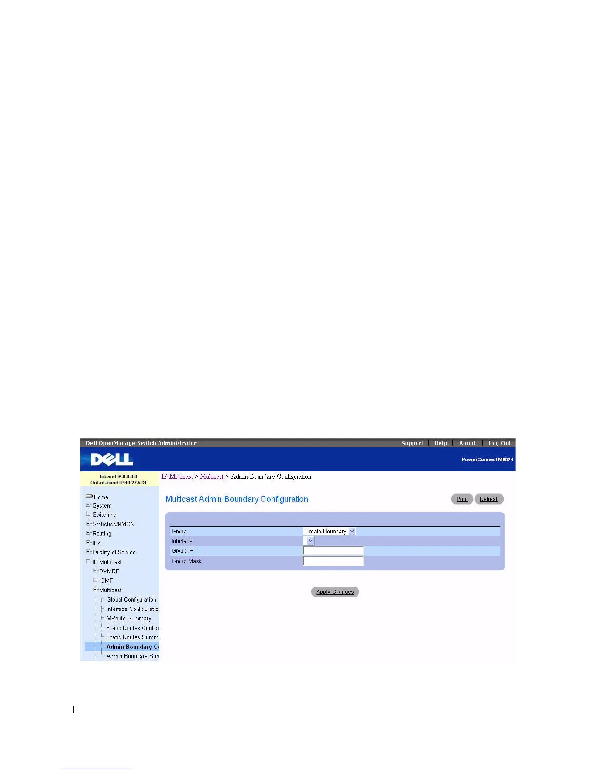 To display the page, click IP Multicast > Multicast > Admin Boundary Configuration in the tree view.