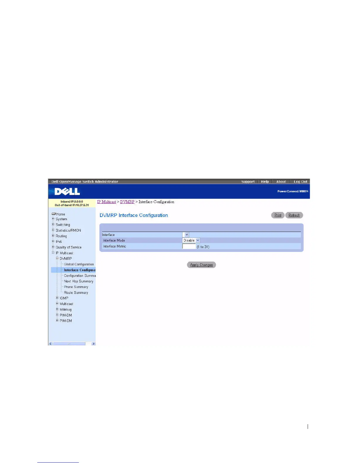 To display the page, click IP Multicast > DVMRP > Interface Configuration in the tree view.
