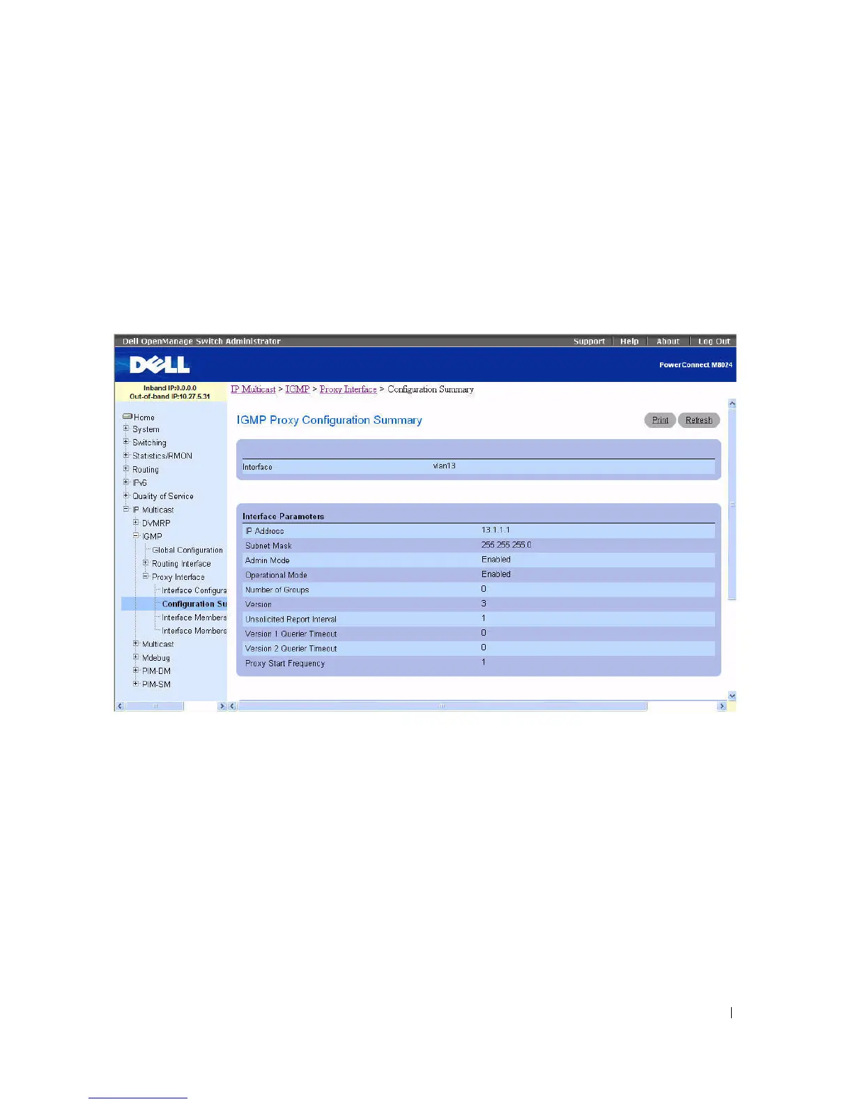 To display the page, click IP Multicast > IGMP > Proxy Interface > Configuration Summary in the
