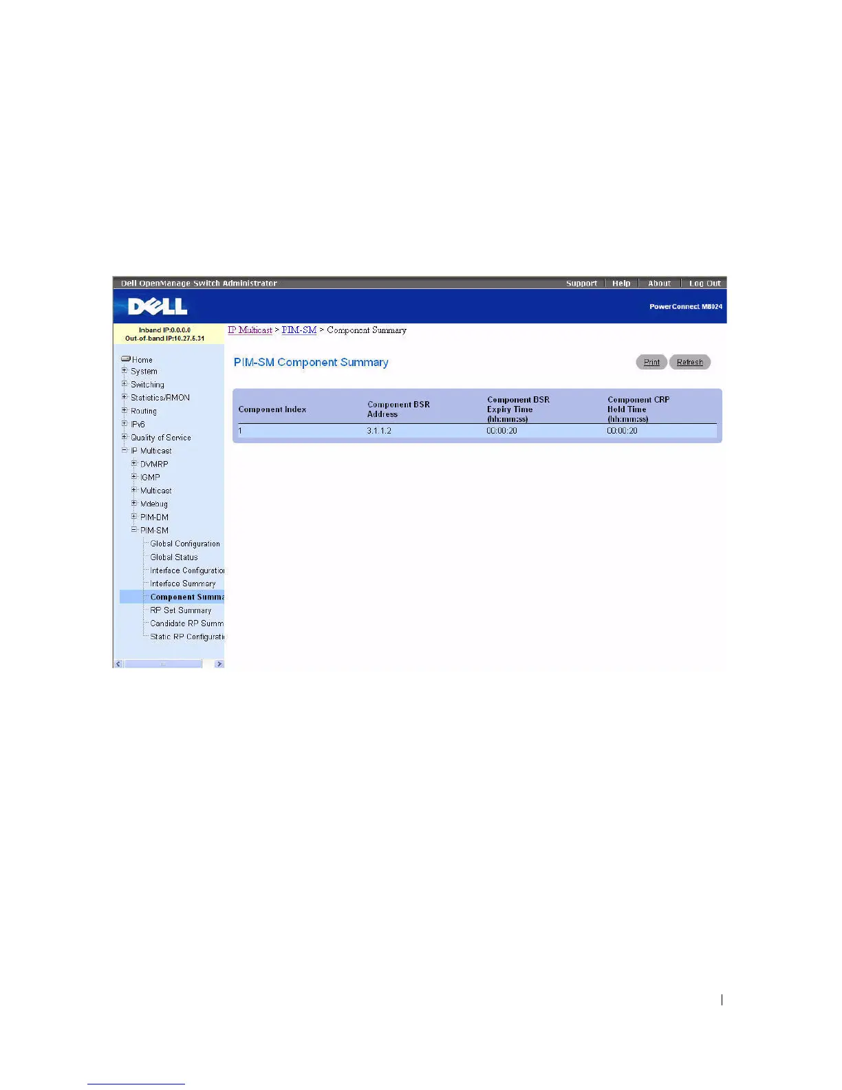 To display the page, click Multicast > PIM-SM > Component Summary in the tree view.