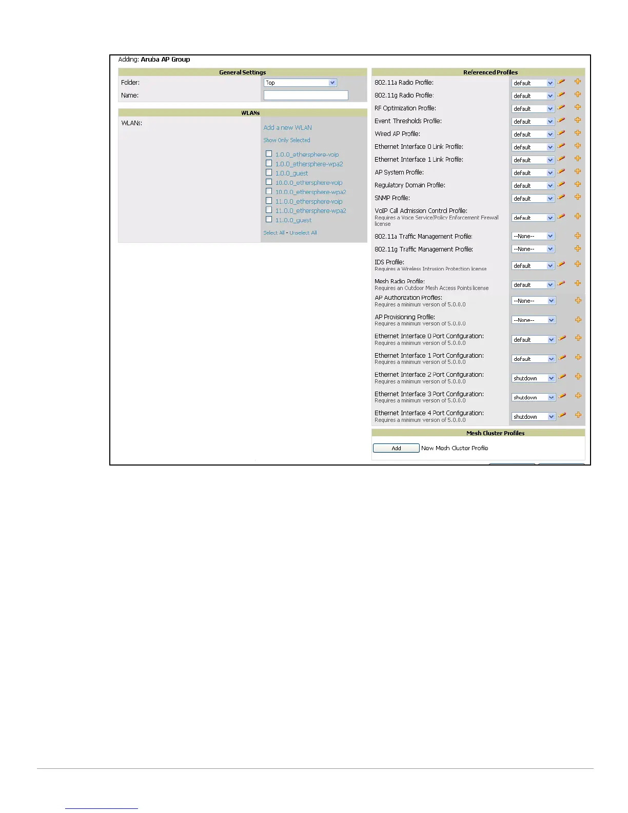 Add or Save to finish creating or editing the Aruba AP Group. Click Cancel to back out of this