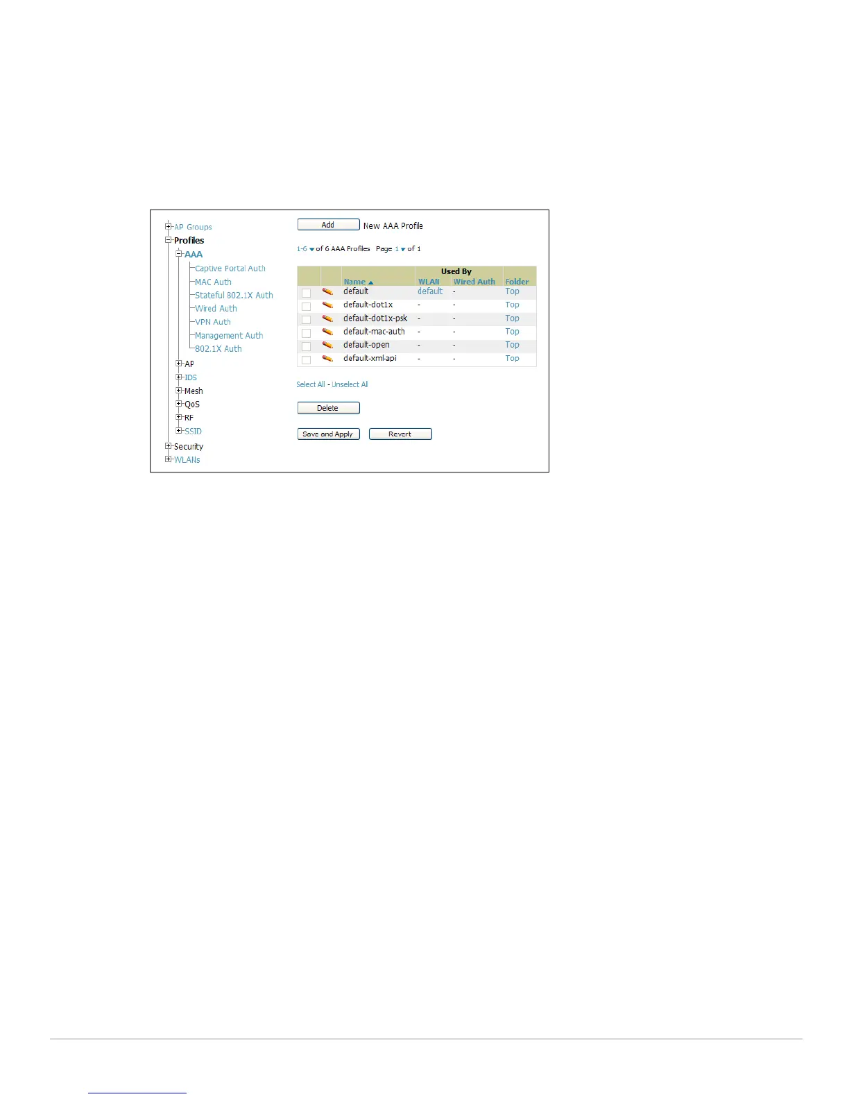 unauthenticated users. This profile type references additional profiles. Refer to “Profiles > AAA” on