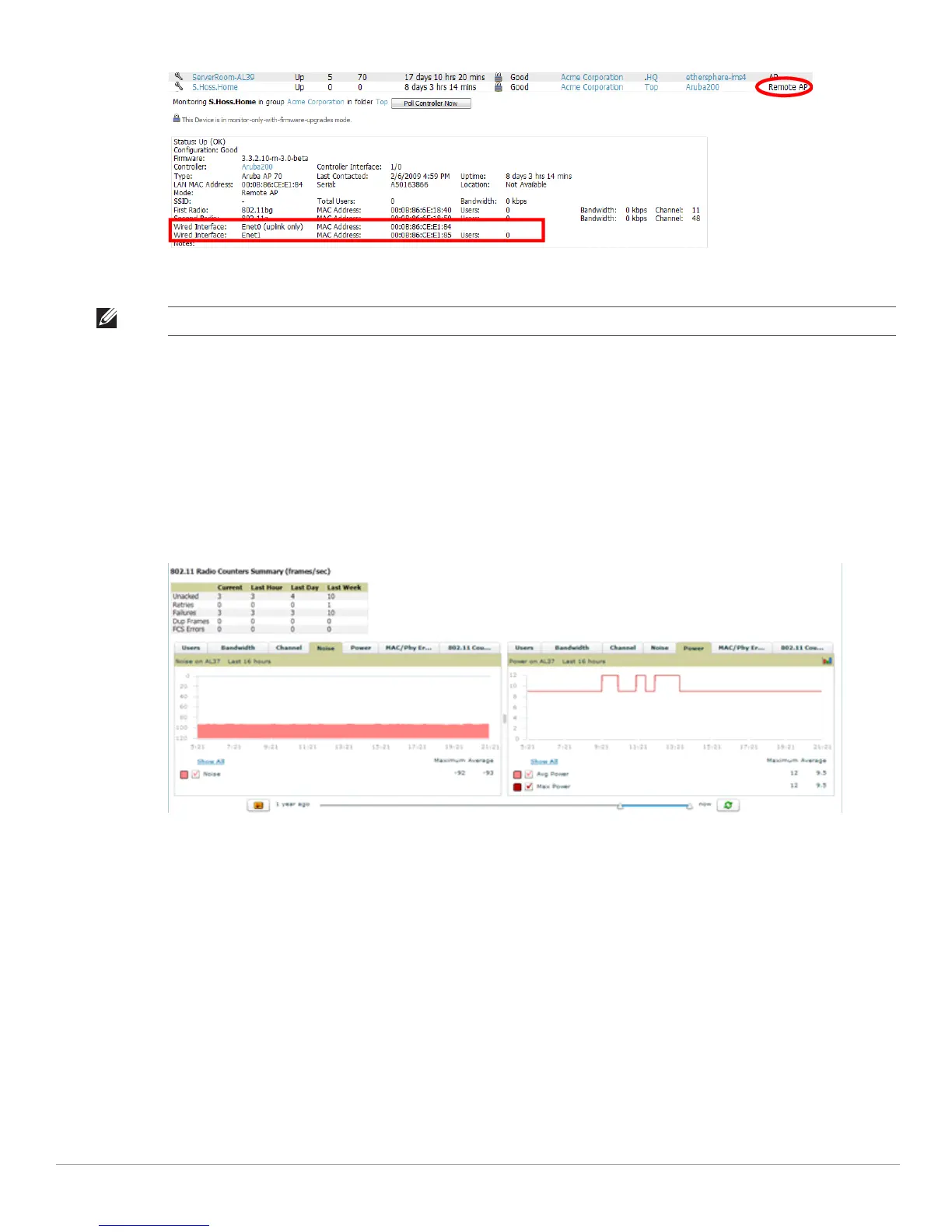 1. Navigate to a Monitoring page for any of the following Dell PowerConnect W models: W-AP105, W-AP92,