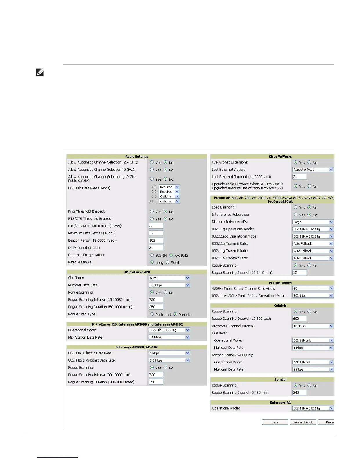The Groups > Radio configuration page allows you to specify detailed RF-related settings for devices in a