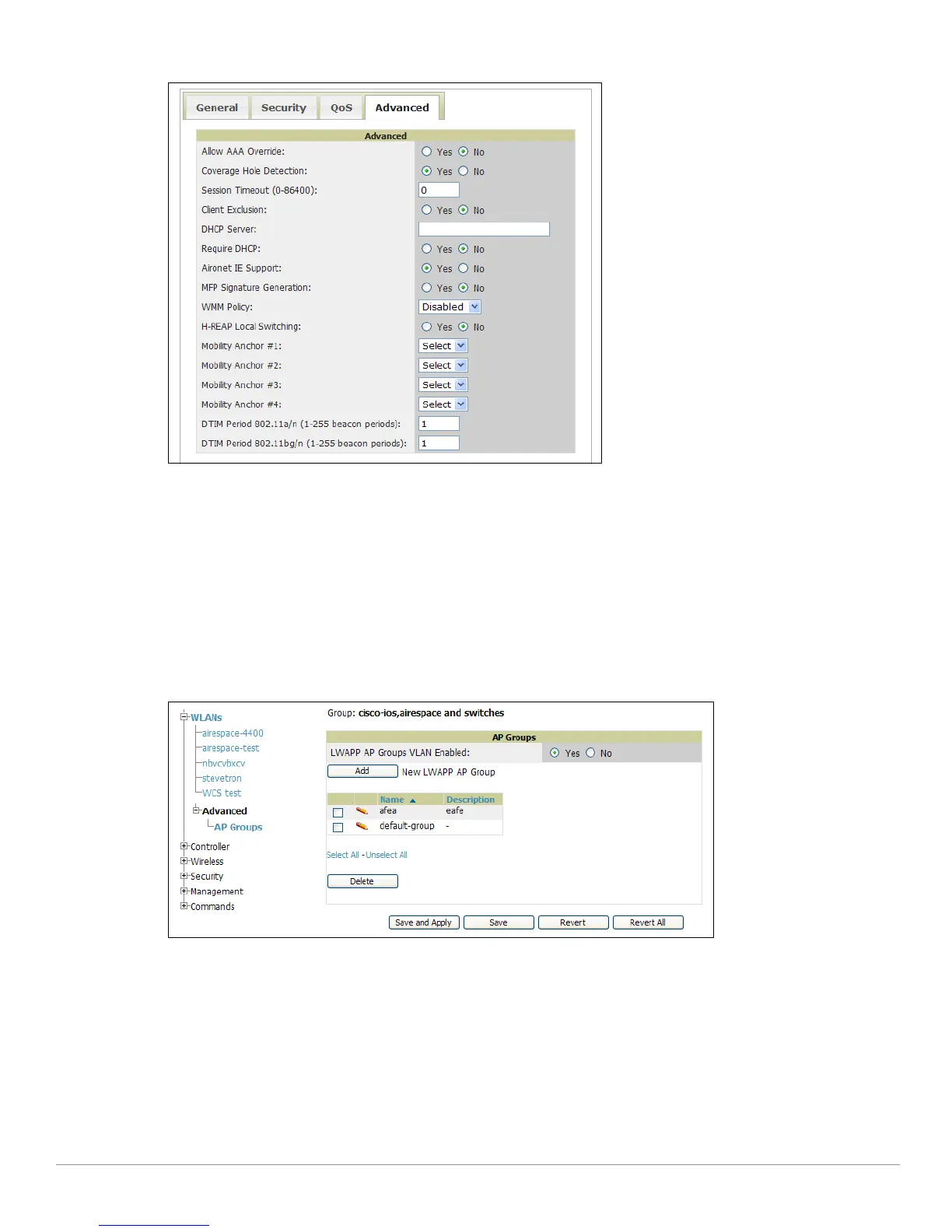 > Cisco WLC Config > WLANS > Advanced > AP Groups Page Illustration