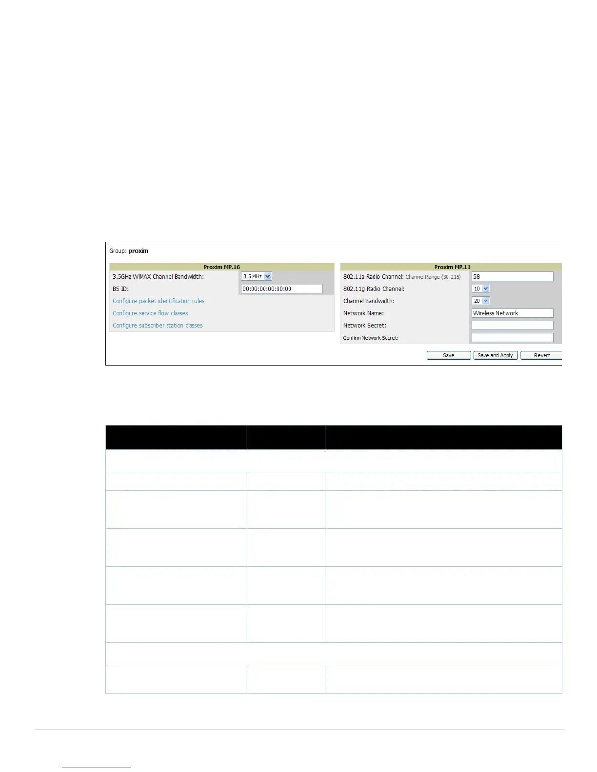 Table 71 Groups > PTMP/WiMAX Fields and Default Values
