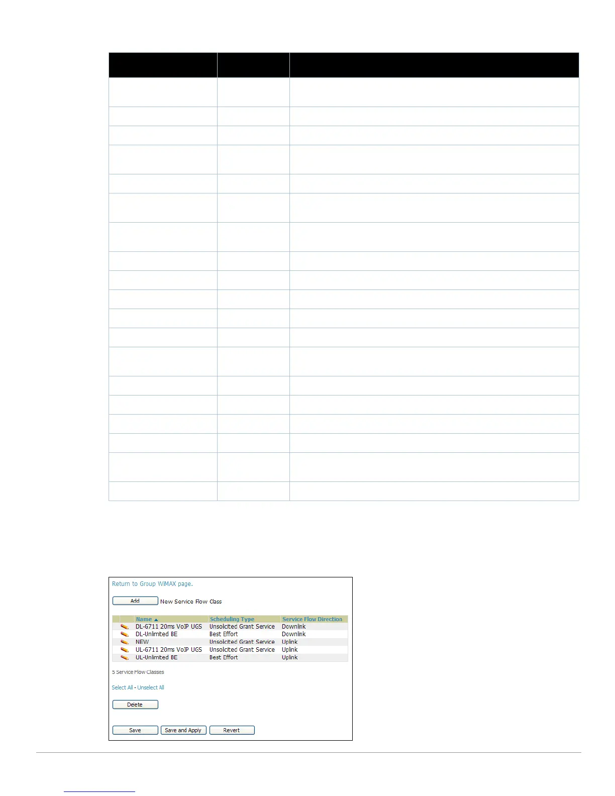 configuration page, and define the settings. Service flow classes are used to describe how the device handles