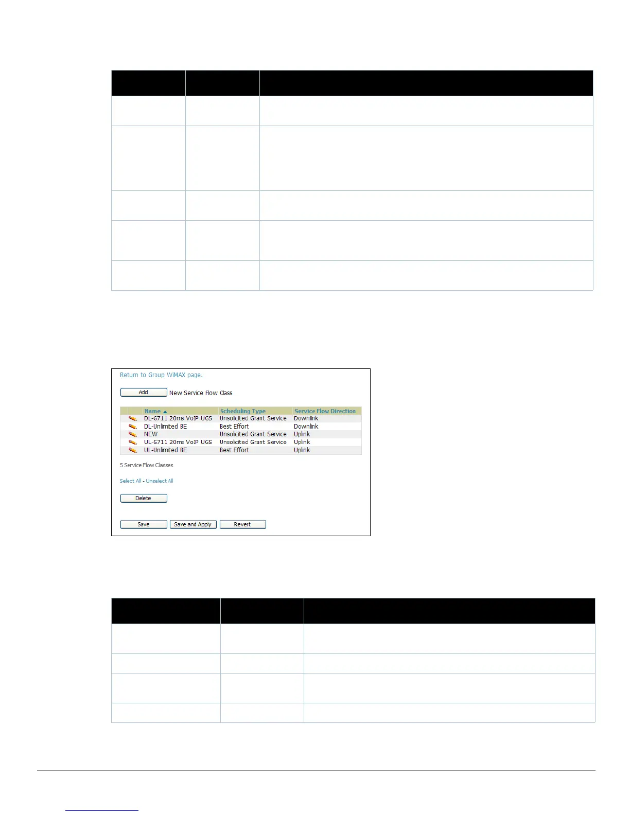 > PTMP/WiMAX Configure Service Flow Classes Fields and Default Values