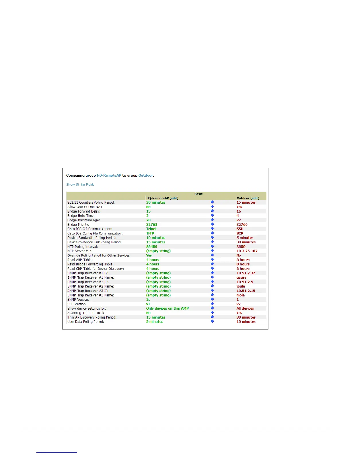To display settings that are similar or identical between two device groups, click Show Similar Fields at