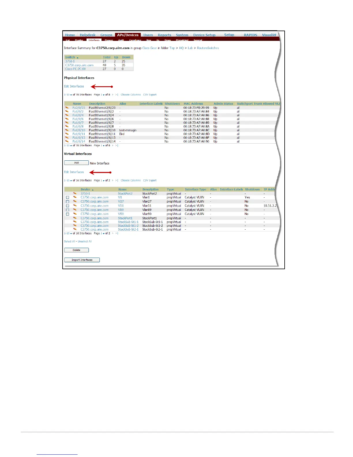 Figure 100 APs/Devices > Interfaces Page for Wired Devices (partial view)