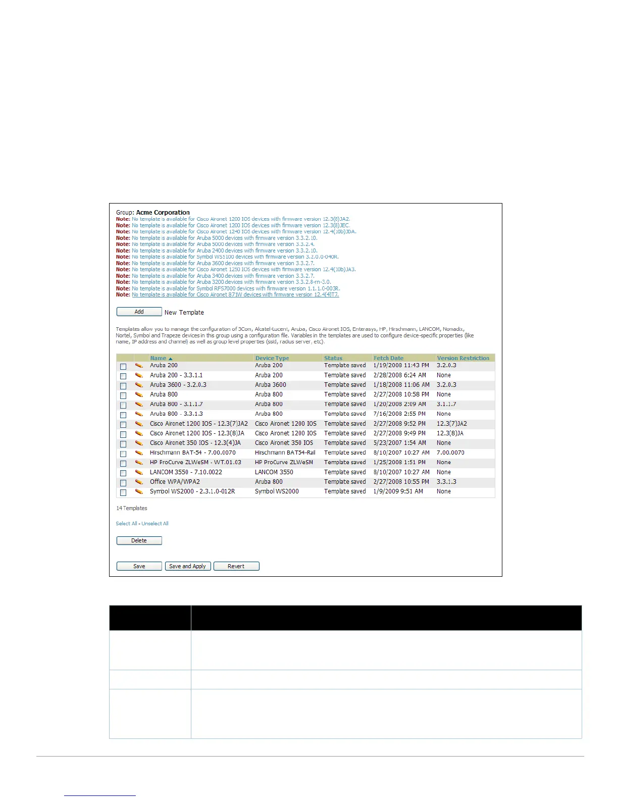 the respective firmware. Click the link from such a note to launch the Add Template configuration page for