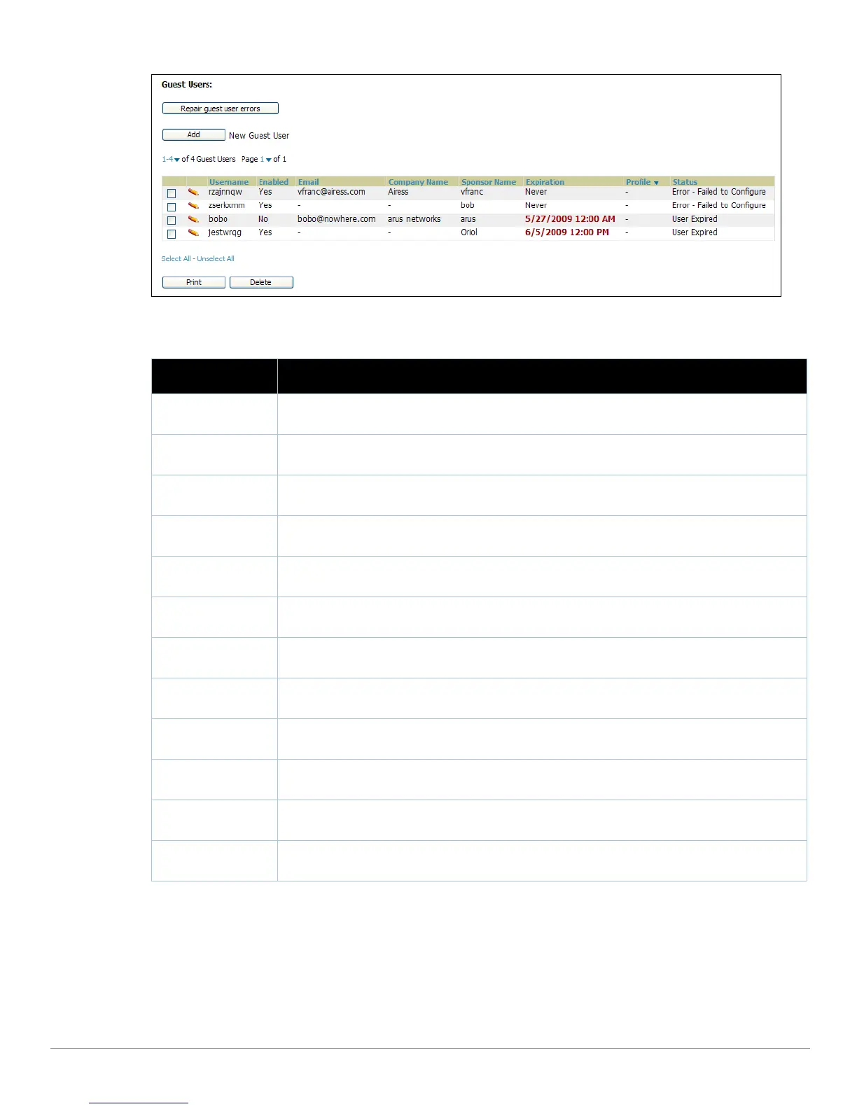 Figure 160 Users > Guest Users Page Illustration