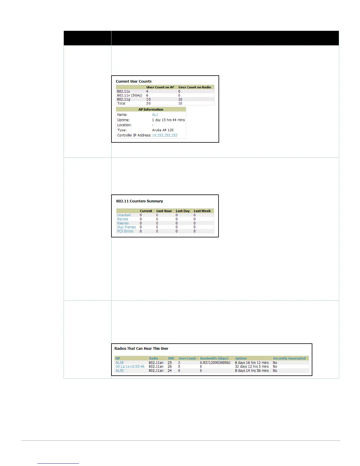 Current User Counts The Current User Counts section displays user counts for APs and radios, and includes additional