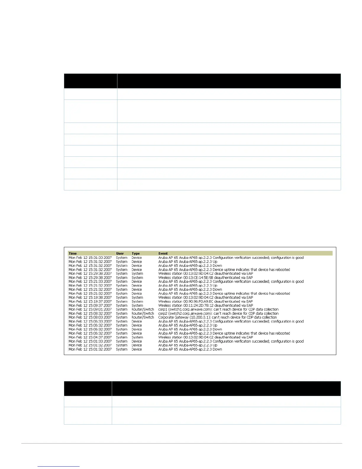 events, including APs coming up and down, services restarting, and most AWMS related errors as well as the