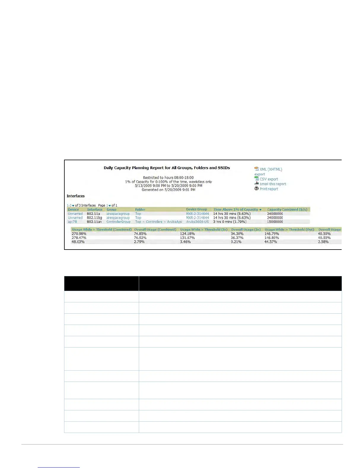 SSIDs. This report assists in analyzing device capacity and performance on the network, and such analysis can