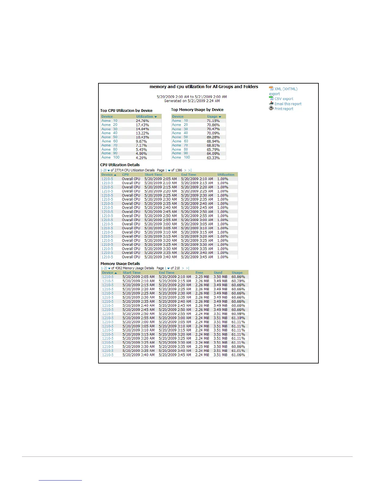 2. Scroll to the bottom, and click Daily Memory and CPU Usage to display report Detail information.