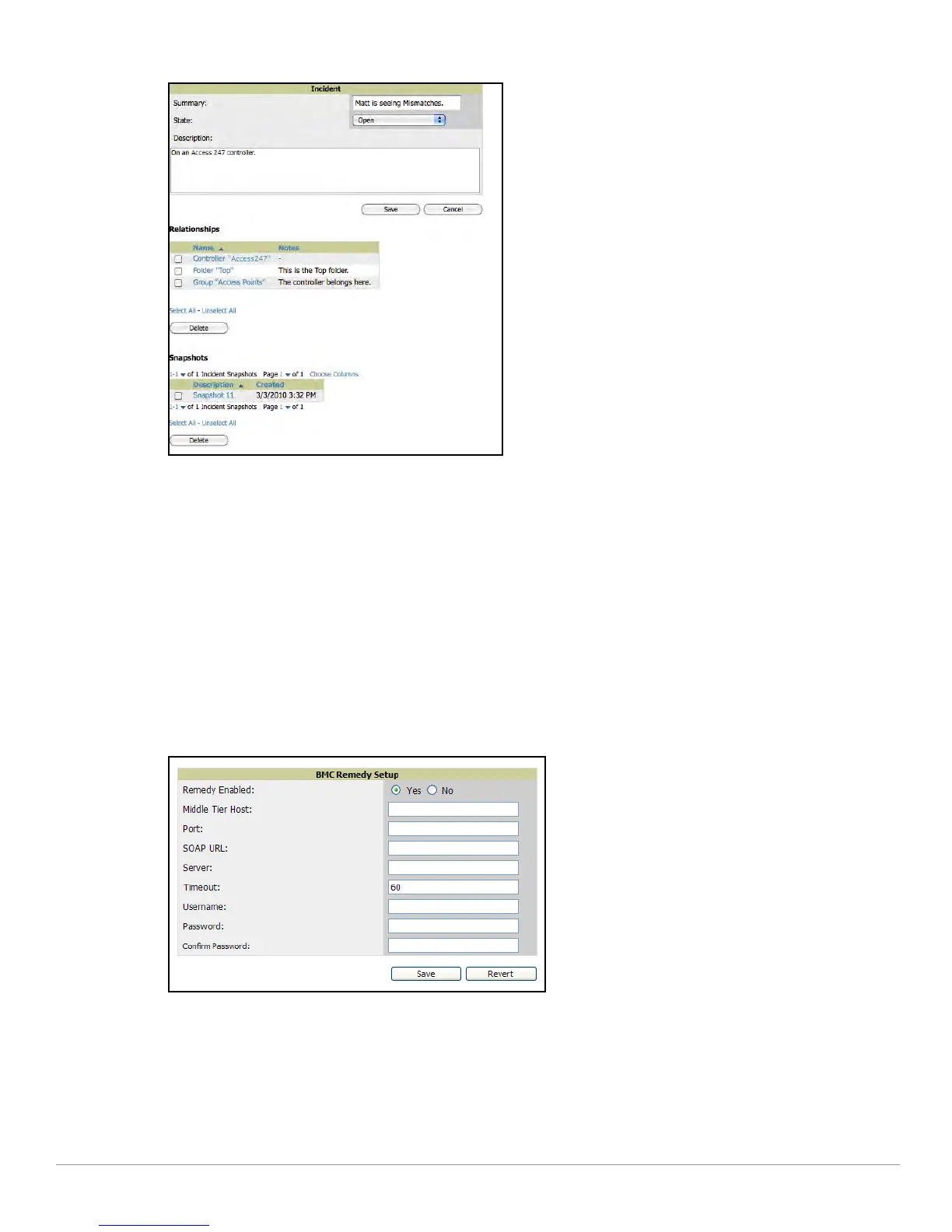 Figure 212 Relationships and Snapshots on the Incident Edit Page