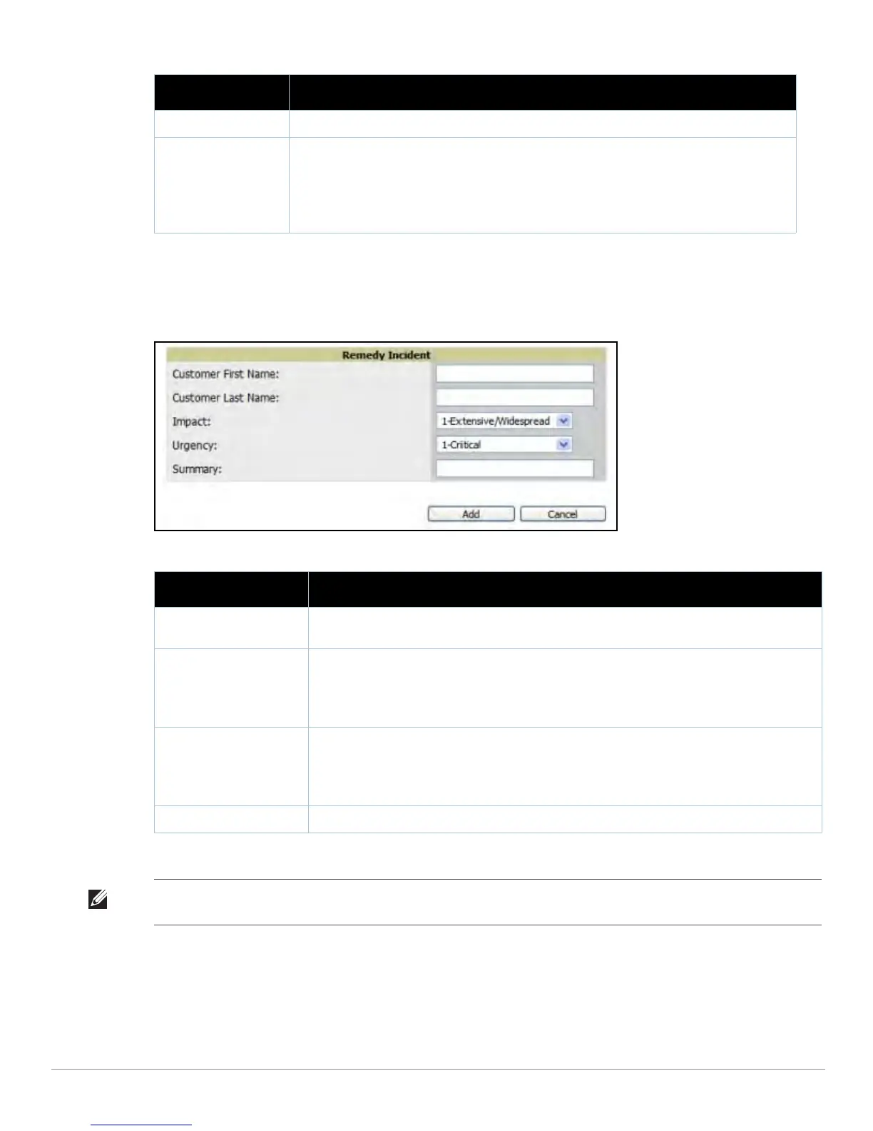 Table 150 Helpdesk > Incidents > Add a New Remedy Incident Fields