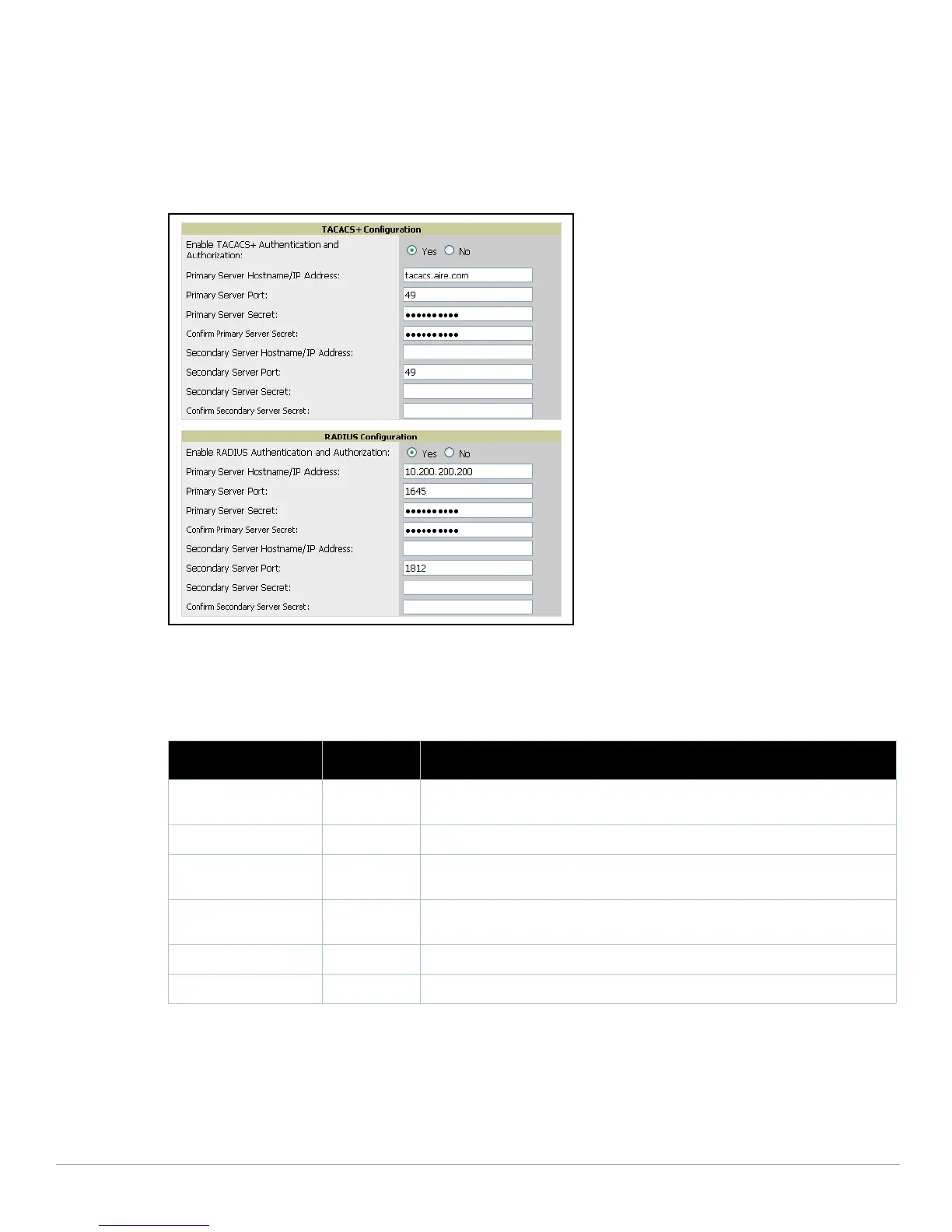 Primary Server Port 49 Enter the TCP port for the primary RADIUS server.