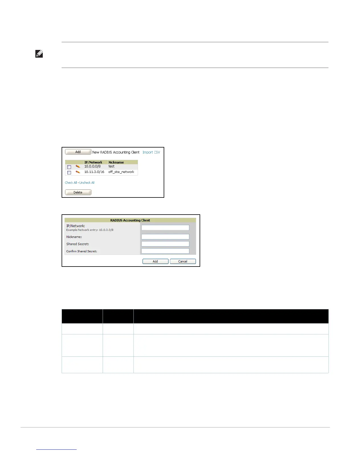 AMP Setup > RADIUS > Add RADIUS Accounting Client Page Illustration