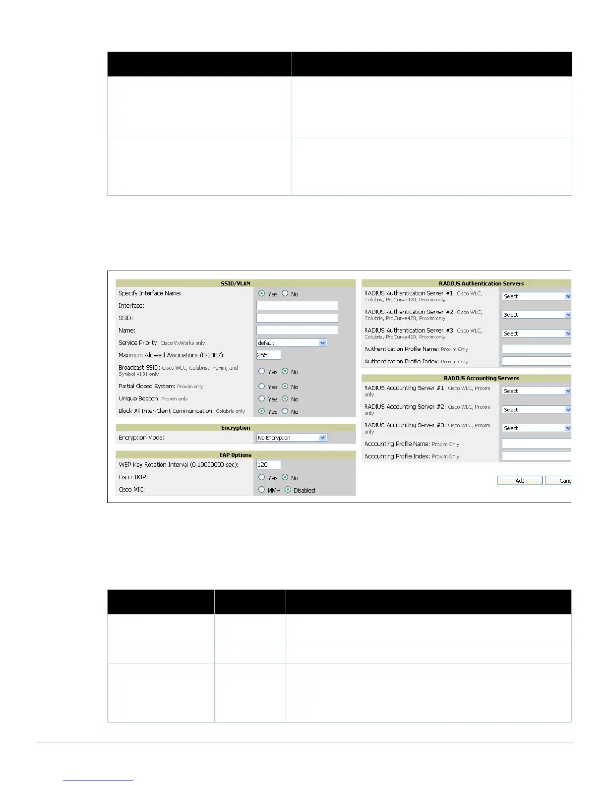 existing SSID or VLAN. The Add SSID/VLAN configuration page appears as illustrated in Figure 45 and