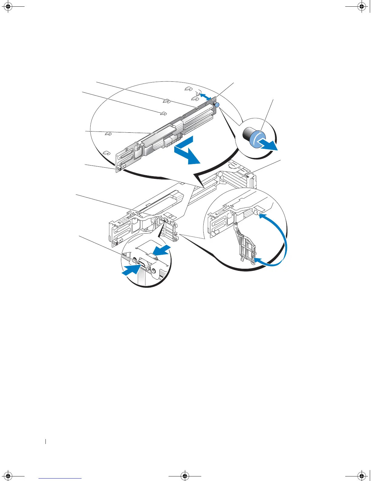Lift the expansion-card riser board from the six securing tabs.