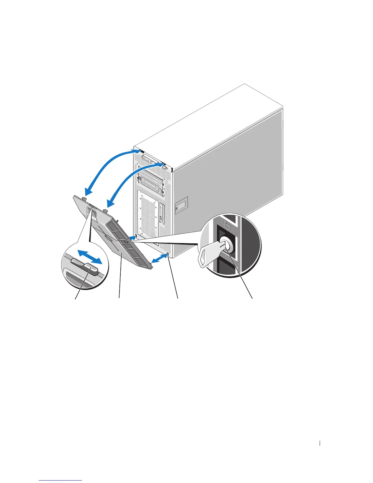 Insert the hooks on the end of the bezel into the bezel slots on the bottom of the system front panel.