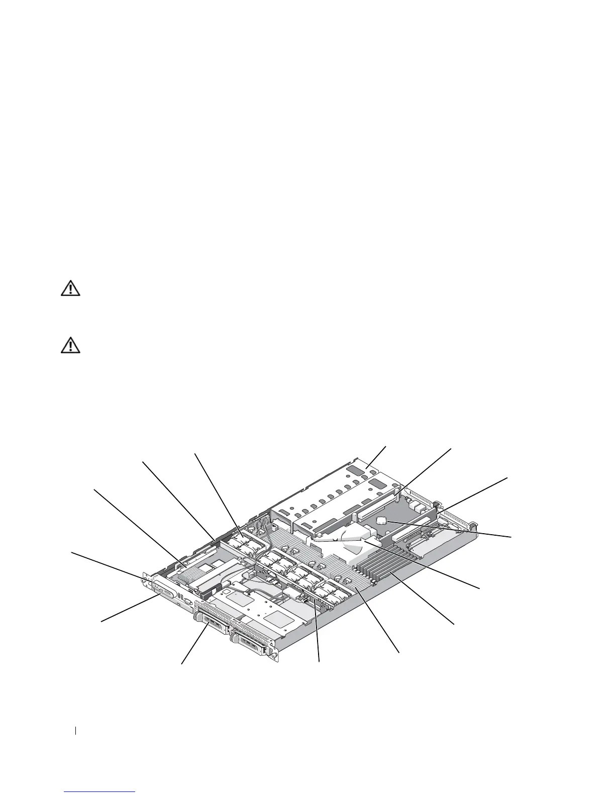In Figure 3-1, the bezel, system cover, and memory cooling shroud are removed to provide an interior view