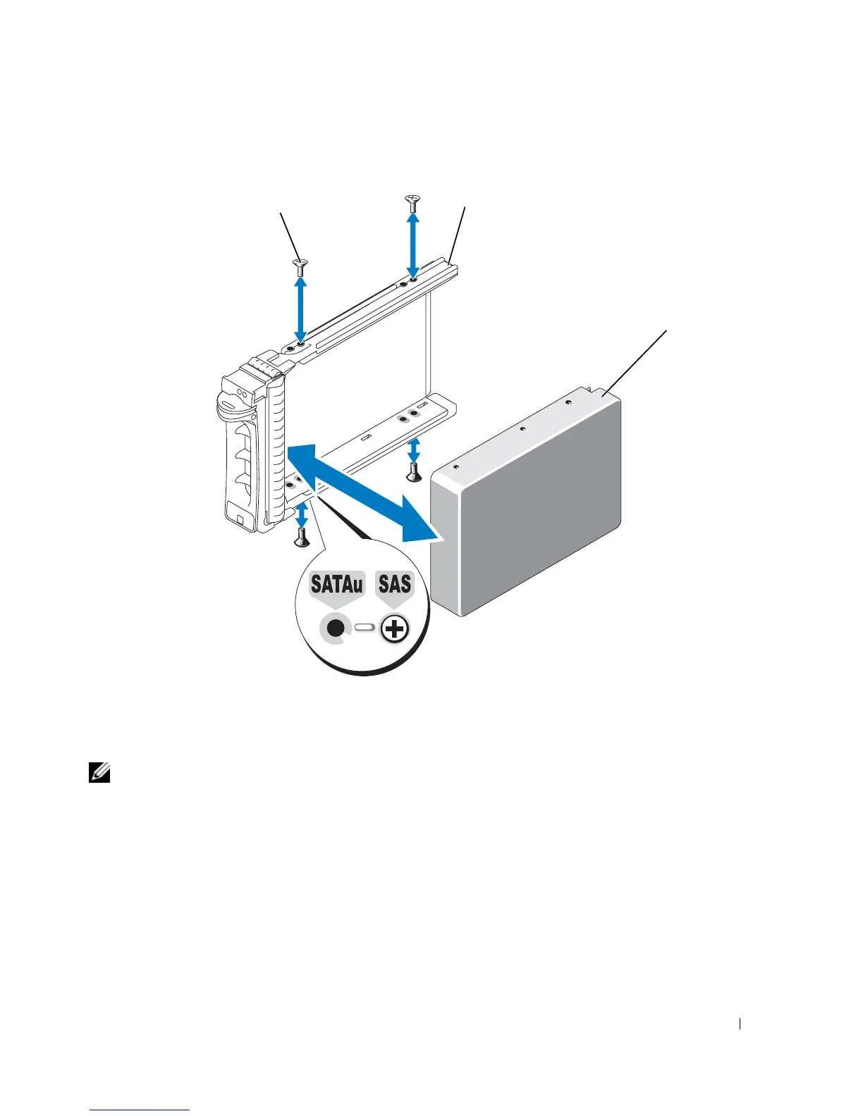 1 screws (4) 2 SATAu drive carrier 3 SAS hard drive