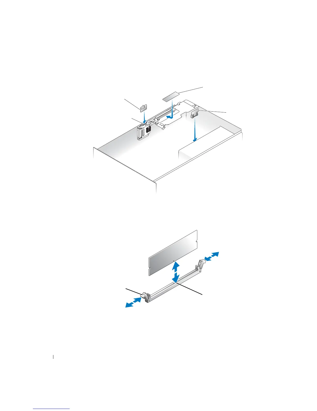 内存模块连接器上的弹出器向外侧下方推动,使内存模块插入连接器内。