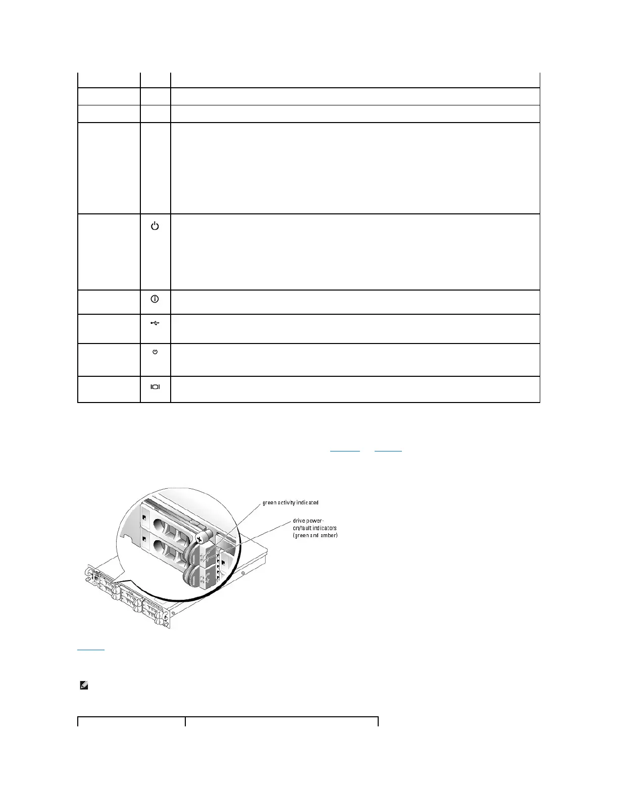 Table1-3 lists the drive indicator patterns. Different patterns are displayed as drive events occur in the system. For example, if a hard-drive fails, the "drive
