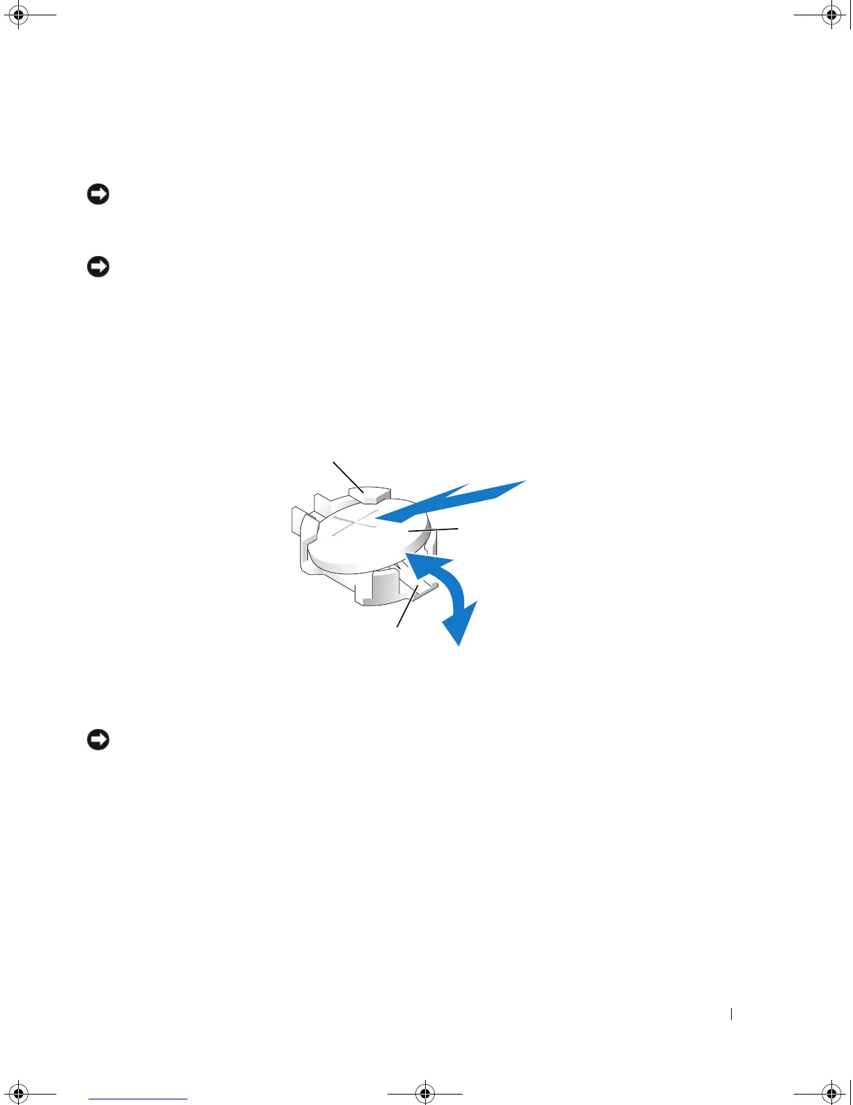 NOTICE: If you pry the battery out of its socket with a blunt object, be careful not to touch the system board with