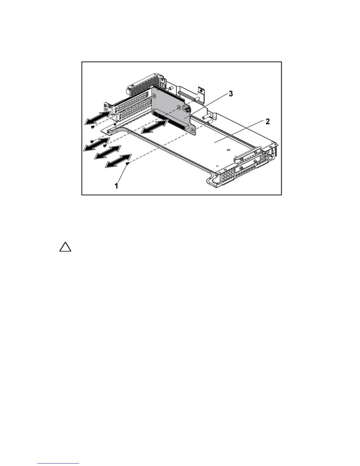 3 Replace the four screws securing the 2U riser card to the expansion-