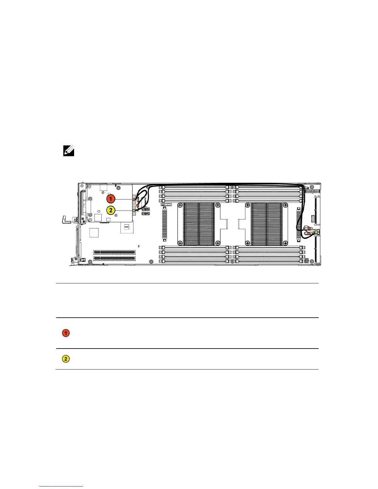 2 Connect the mini-SAS cable to the LSI 2008 SAS Mezzanine card, and
