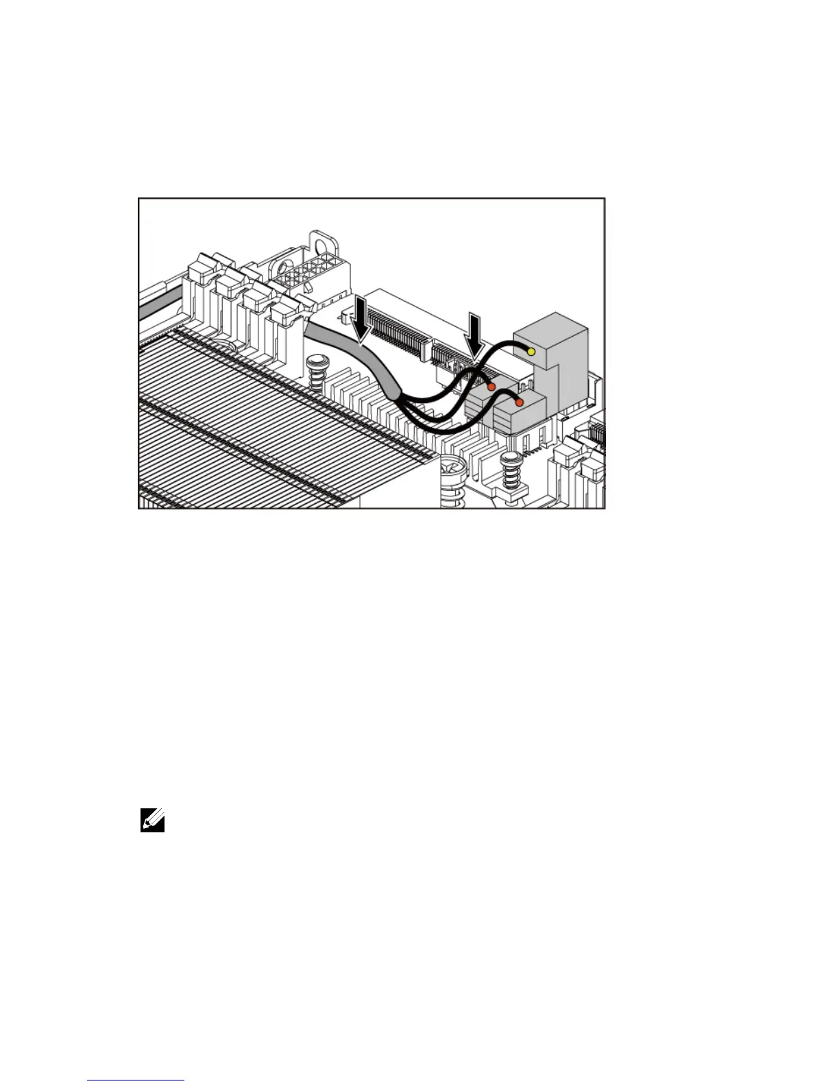 1 Connect the mini-SAS cable to the LSI 2008 SAS mezzanine card, and