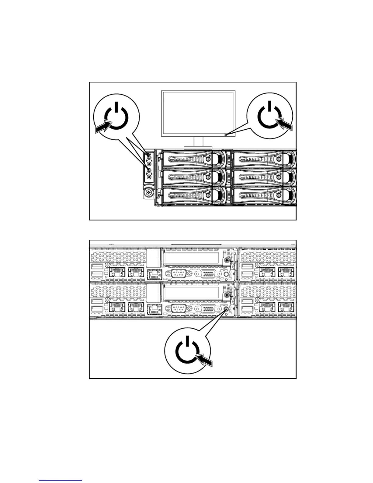 Tekan tombol daya di bagian depan atau belakang sistem dan di monitor.