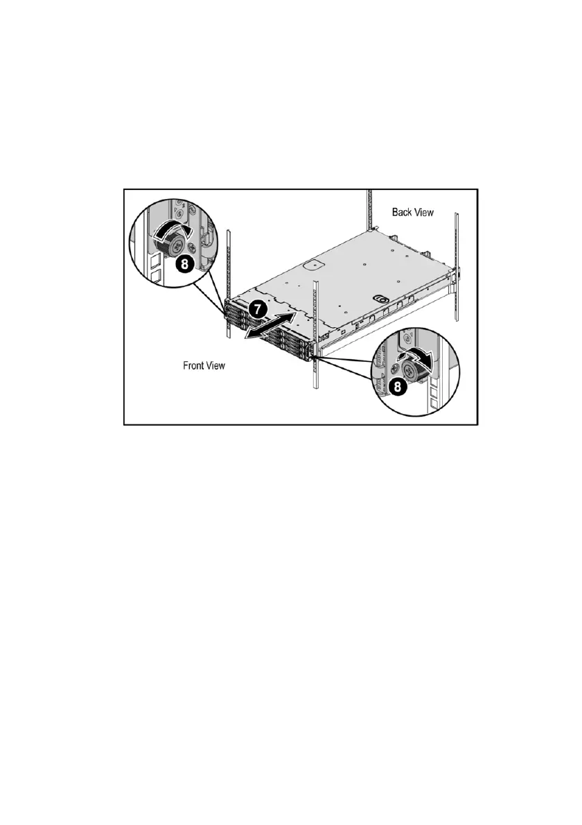 8 Tighten the thumbscrews to secure the ears of the system to the front of the