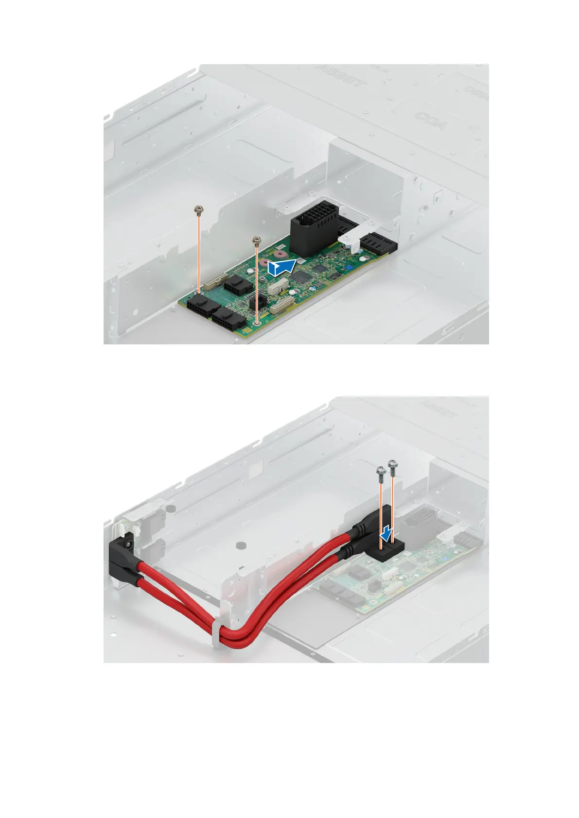 4. Using the Phillips 2 screwdriver, tighten the screws to secure the midplane power cable to the chassis management board.