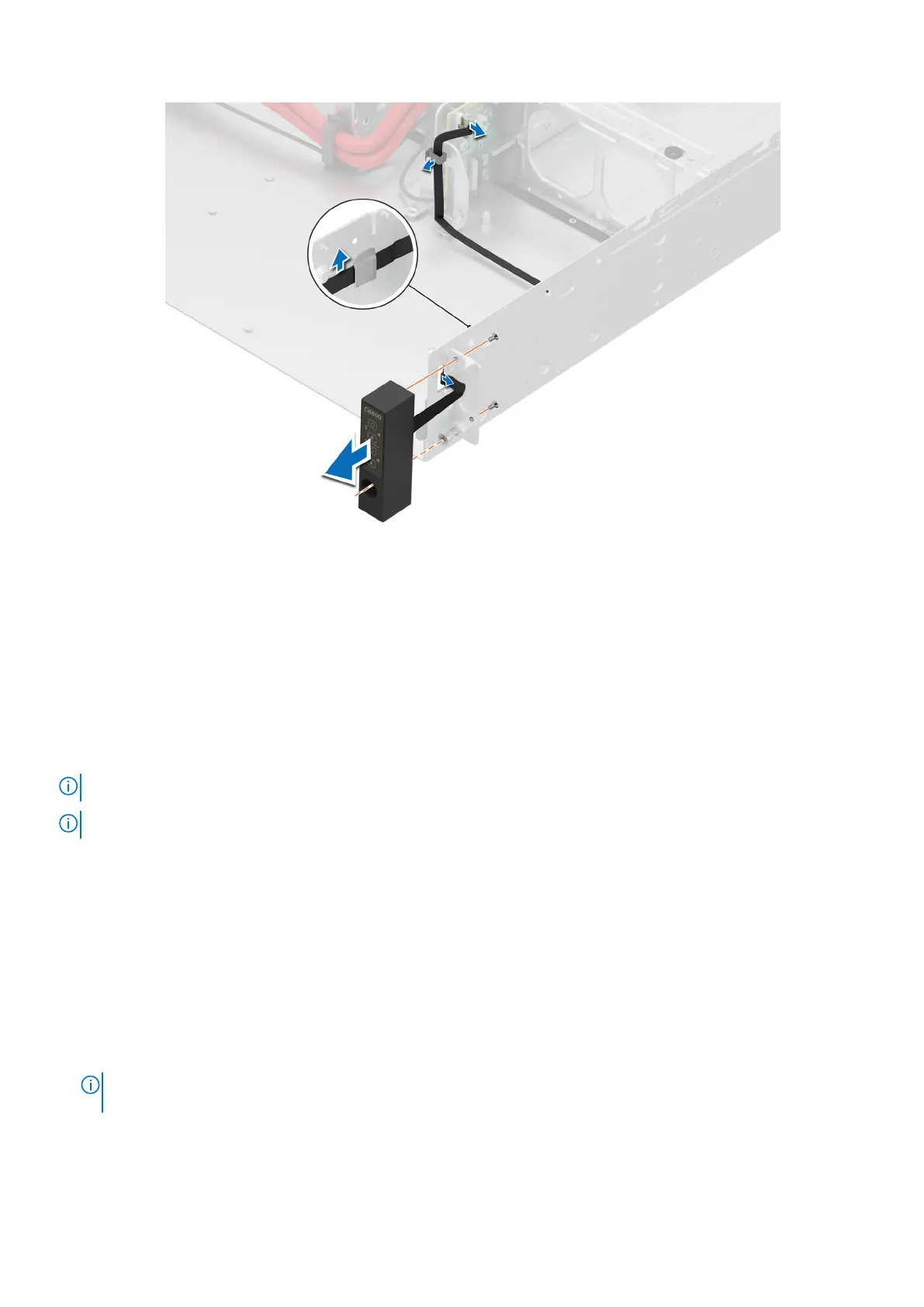 1. Route the right control panel cable through the cable retention clips and the rubber holder on the right midplane.