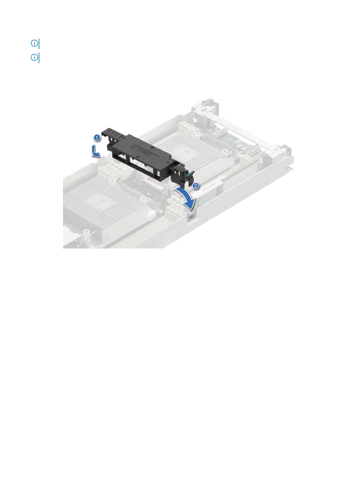 2. Lower the air shroud until the blue clip locks in place.