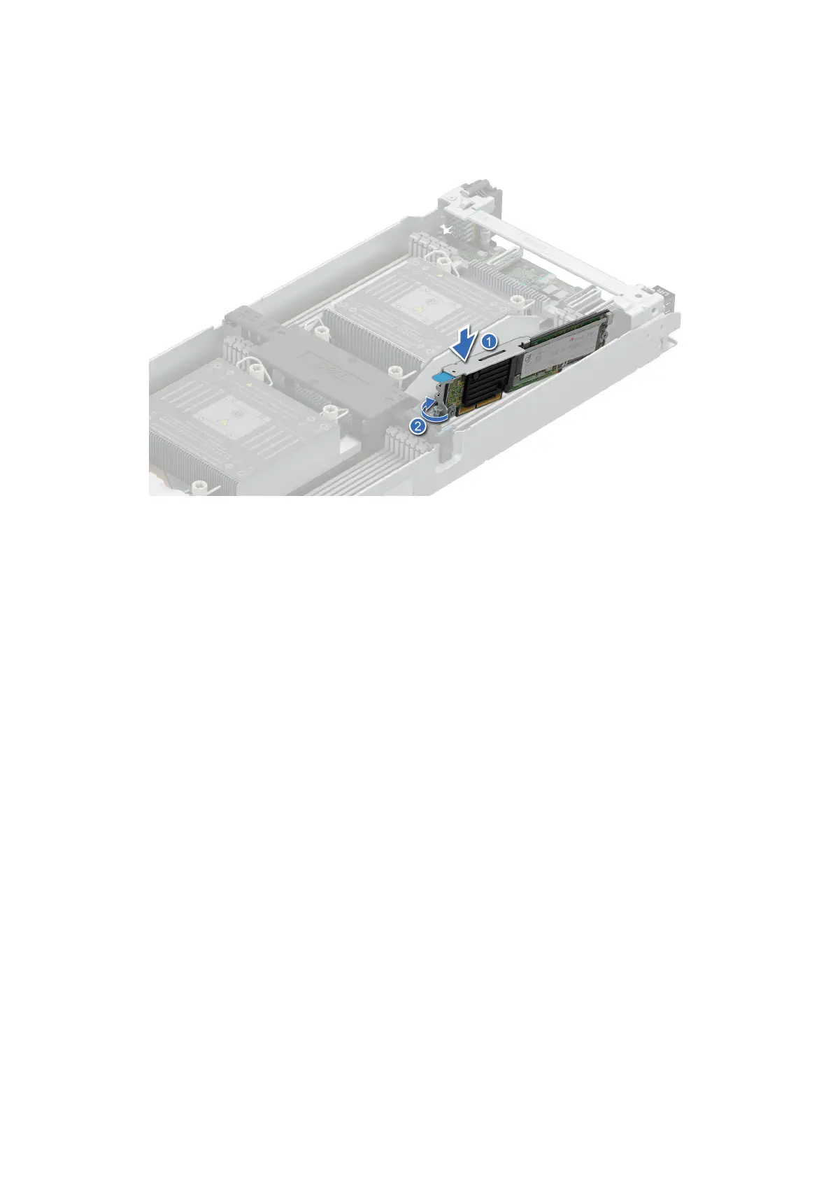 1. Using a Phillips 1 screwdriver, remove the screw securing the M.2 SSD module to the M.2 riser.