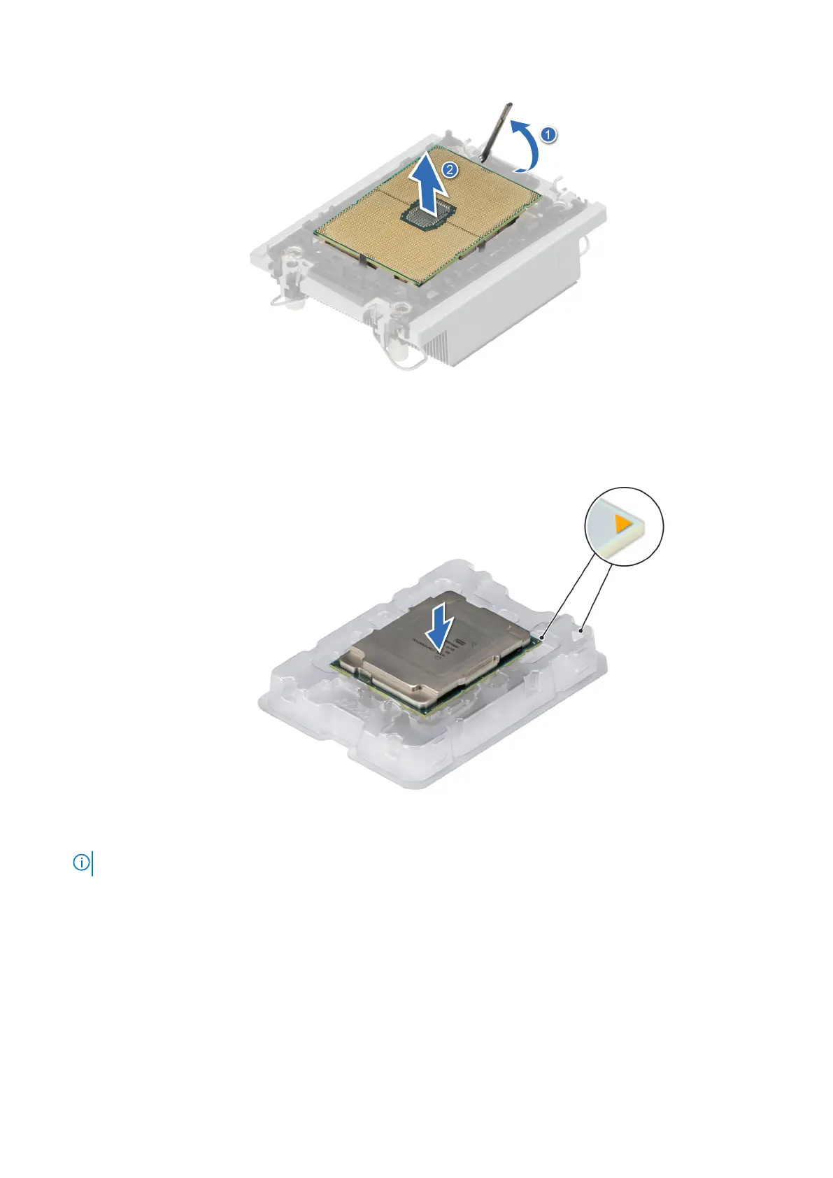 6. After all the corners are released from the heat sink, lift the retaining clip from the pin 1 corner of the heat sink.
