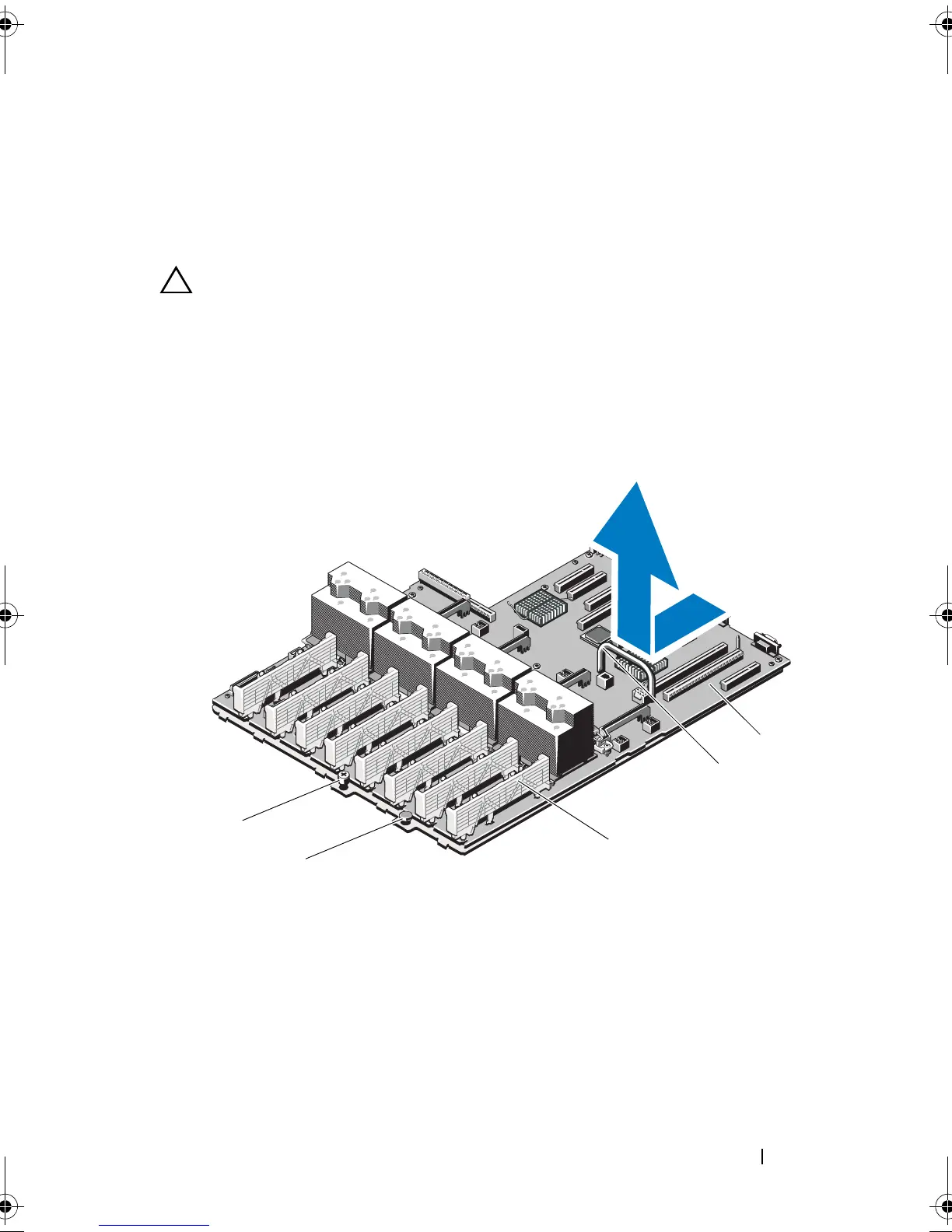 CAUTION: Do not lift the system board assembly by grasping a memory module,