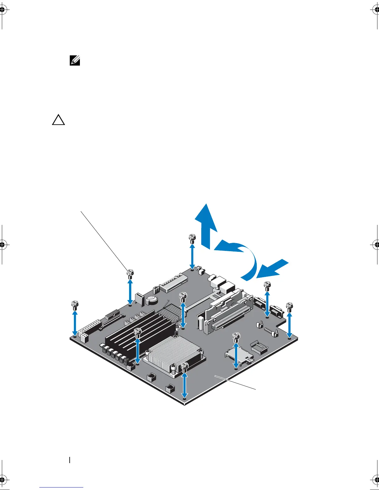 CAUTION: Do not lift the system board assembly by grasping a memory module,