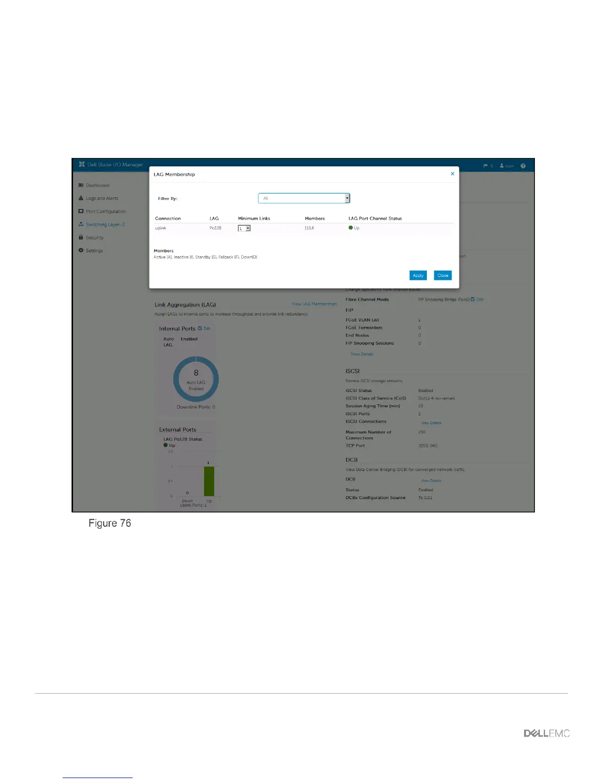 The Blade I/O Manager has a View LAG Membership feature (Figure 76) that is equivalent to the CLI
