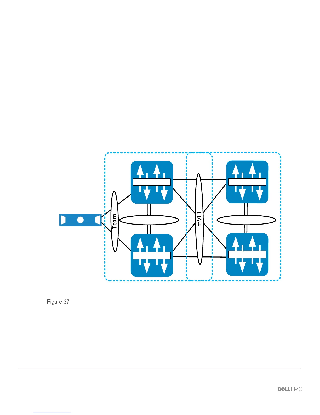 Figure 37 illustrates using Dell EMC’s VLT protocol on a pair of IOMs in a switch environment