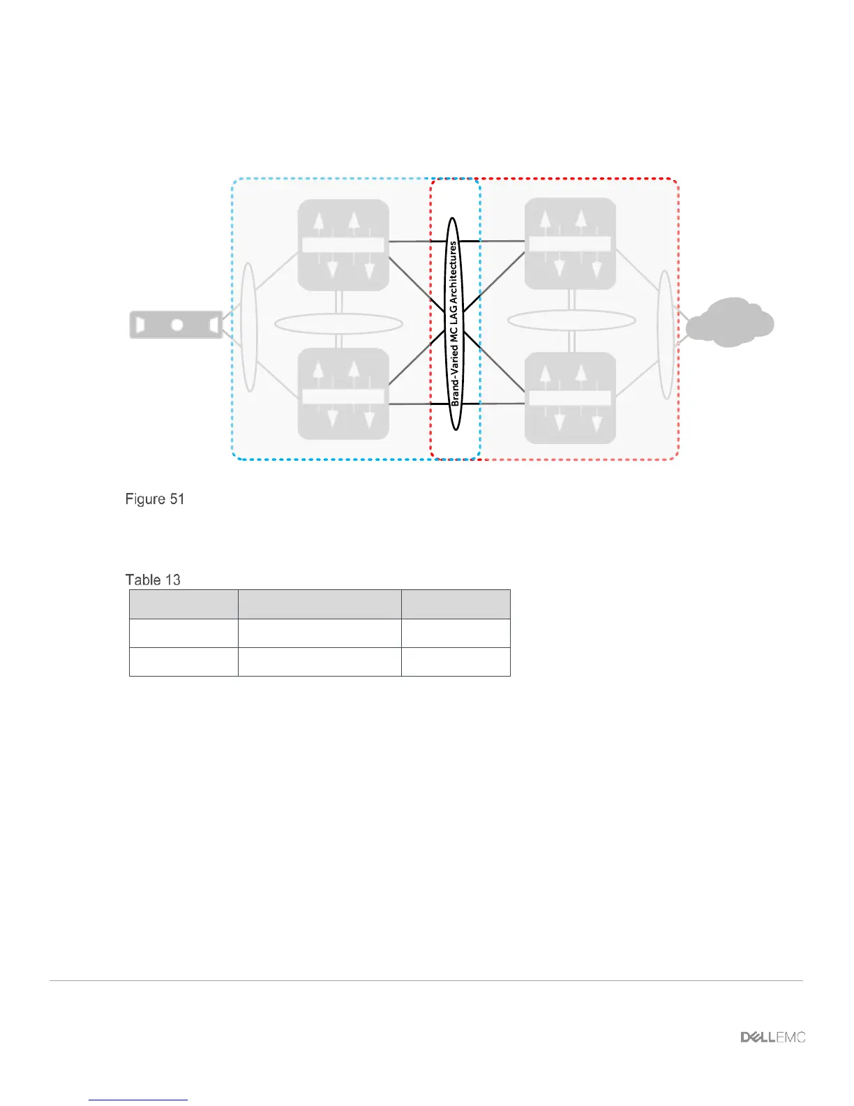 Figure 51 shows that the Dell Networking architecture for mVLT is very similar to this brand-varied