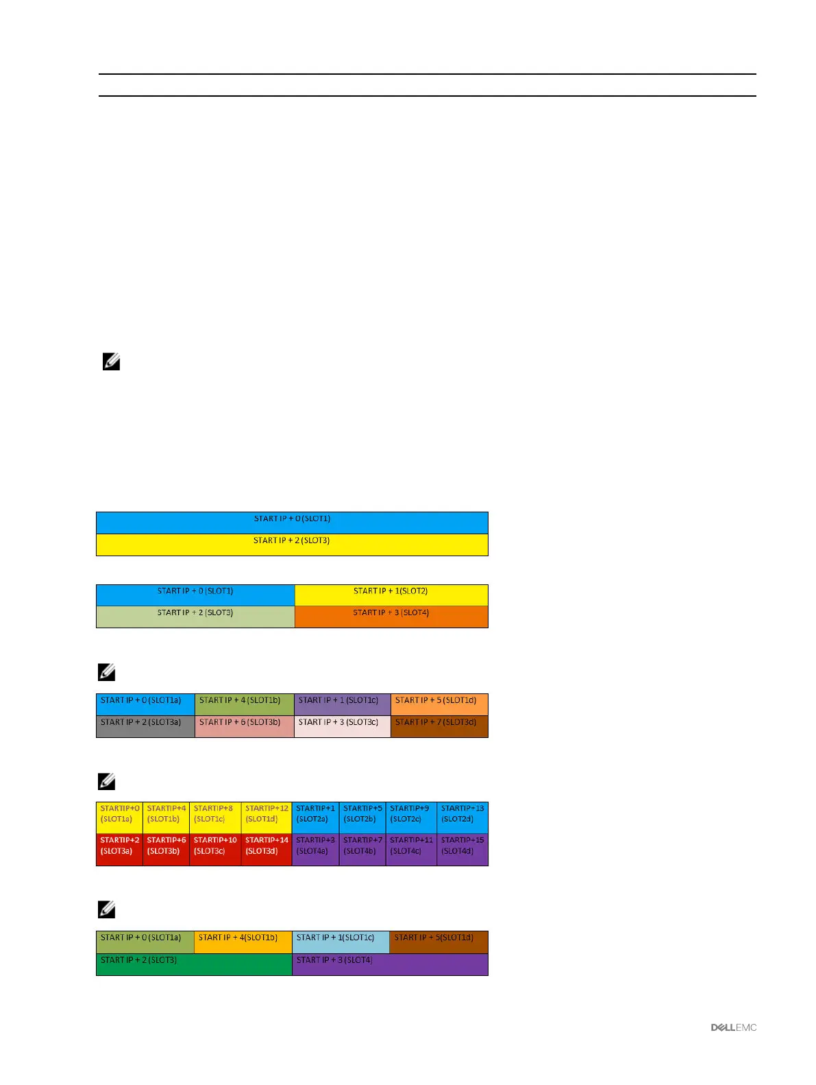 The following tables show the way that the QuickDeploy IP addresses assigned to the servers based on the sleds present in the