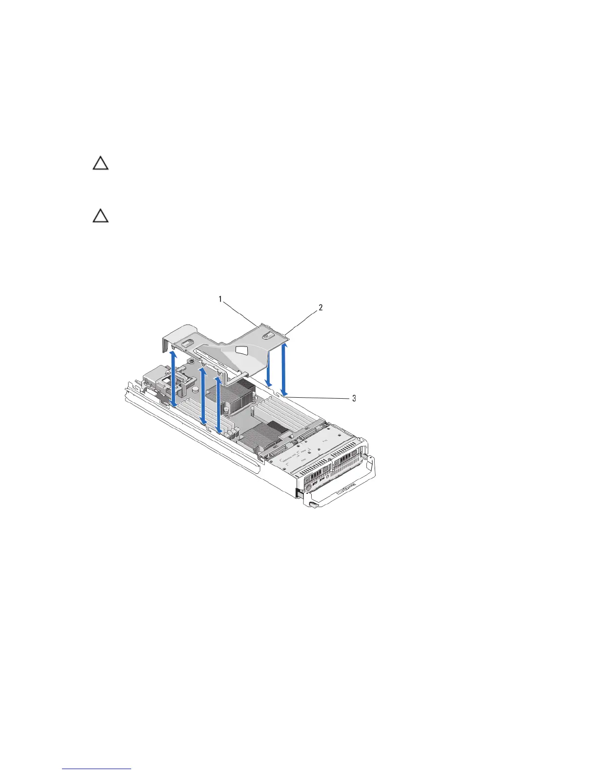 3. Hold the cooling shroud at both ends near the blade chassis and lift it up and away from the blade.