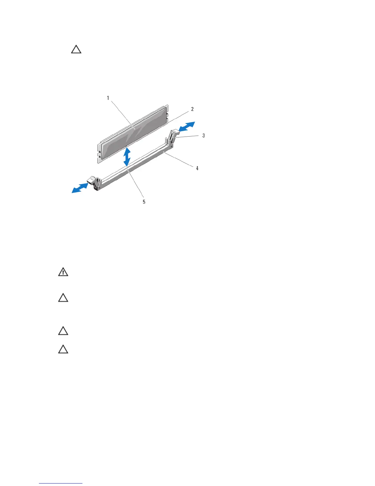 CAUTION: Handle each memory module only by the card edges, making sure not to touch the middle of the